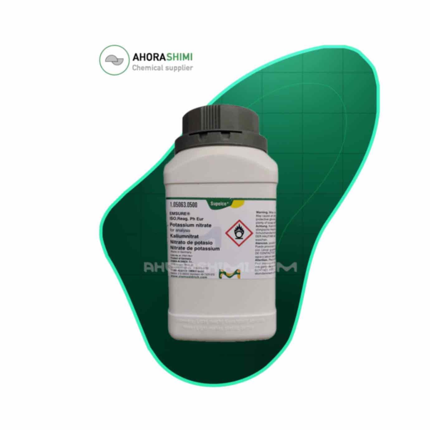 پتاسیم نیترات (Potassium Nitrate) با فرمول شیمیایی KNO₃ و cas number : 7757-79-1 یک ترکیب معدنی سفید رنگ است که به عنوان یکی از مهمترین منابع نیتروژن و پتاسیم شناخته میشود. این ماده در صنایع شیمیایی، کشاورزی، داروسازی و آزمایشگاهی کاربرد گسترده دارد. پتاسیم نیترات مرک کد 105063 محصول برند معتبر Merck آلمان است و دارای خلوص بالا و گرید آزمایشگاهی میباشد، که آن را برای مصارف تحقیقاتی و صنعتی مناسب میسازد.